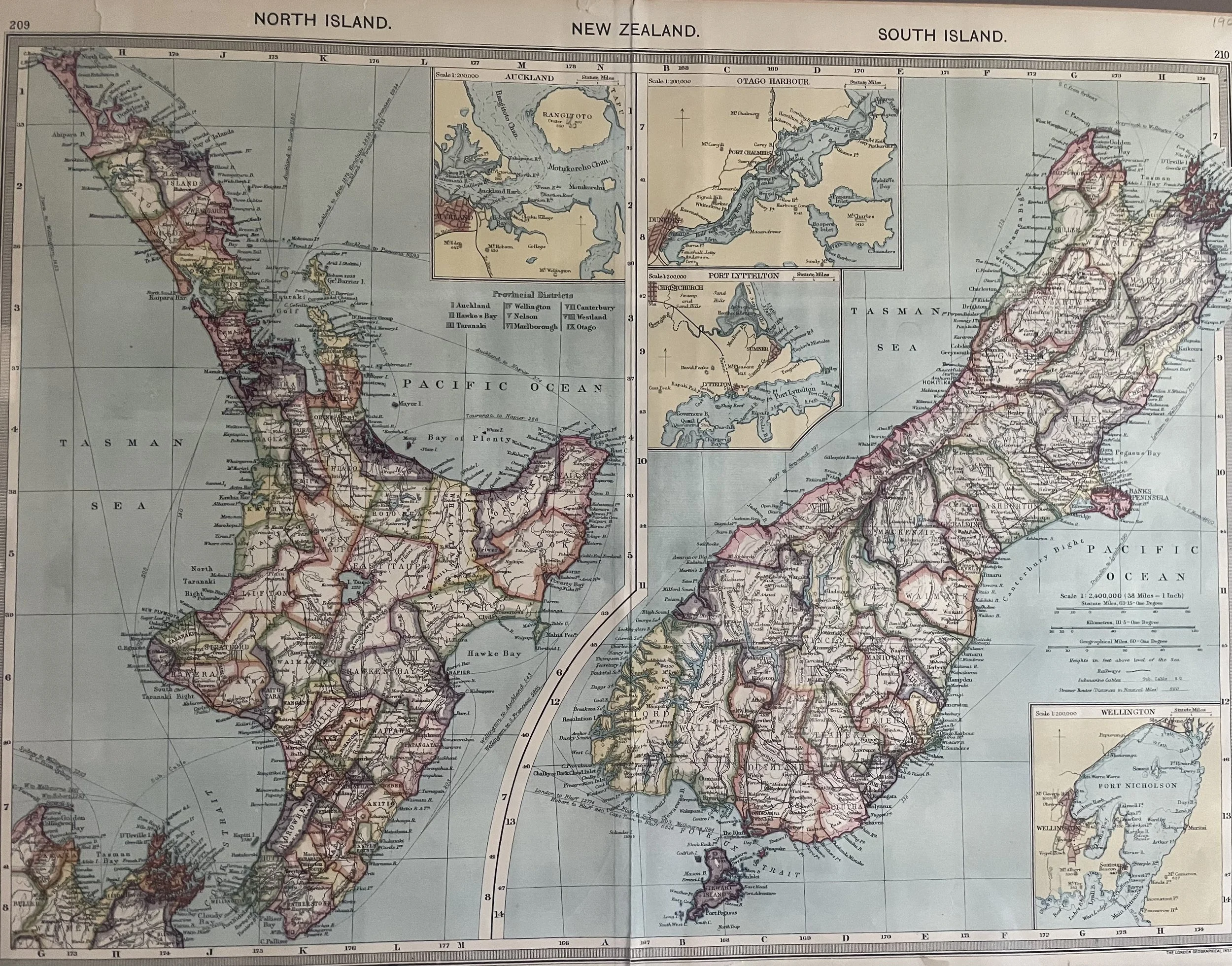 Historic map of New Zealand's provincial boundaries (1908). Regional boundaries have been reshaped several times since, including the major reforms of 1989.